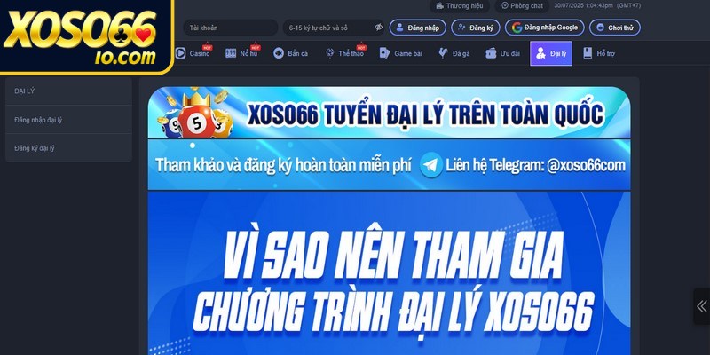 Đại lý XOSO66 là chương trình hợp tác đặc biệt được nhà cái phát triển nhằm mở rộng mạng lưới khách hàng trên toàn quốc. Đây được xem như một mô hình kinh doanh thông minh không vốn, không rủi ro, không giới hạn thu nhập hay không áp lực doanh số. Hãy cùng khám phá chi tiết ngay trong bài viết dưới đây để biết cụ thể về chương trình hợp tác cùng Xoso66 nhé.